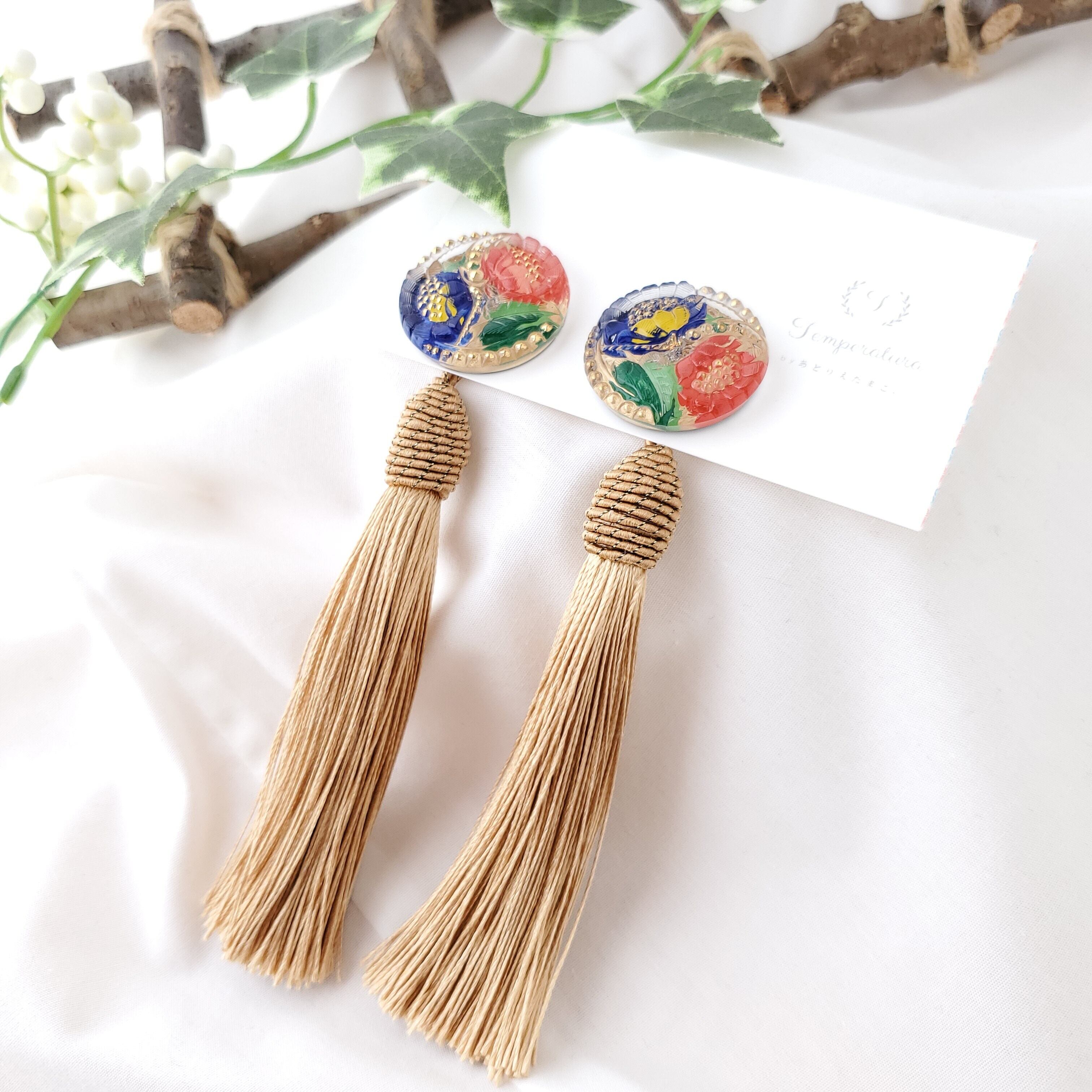 チェコガラスの装飾の美しさとベージュゴールドのフリンジ