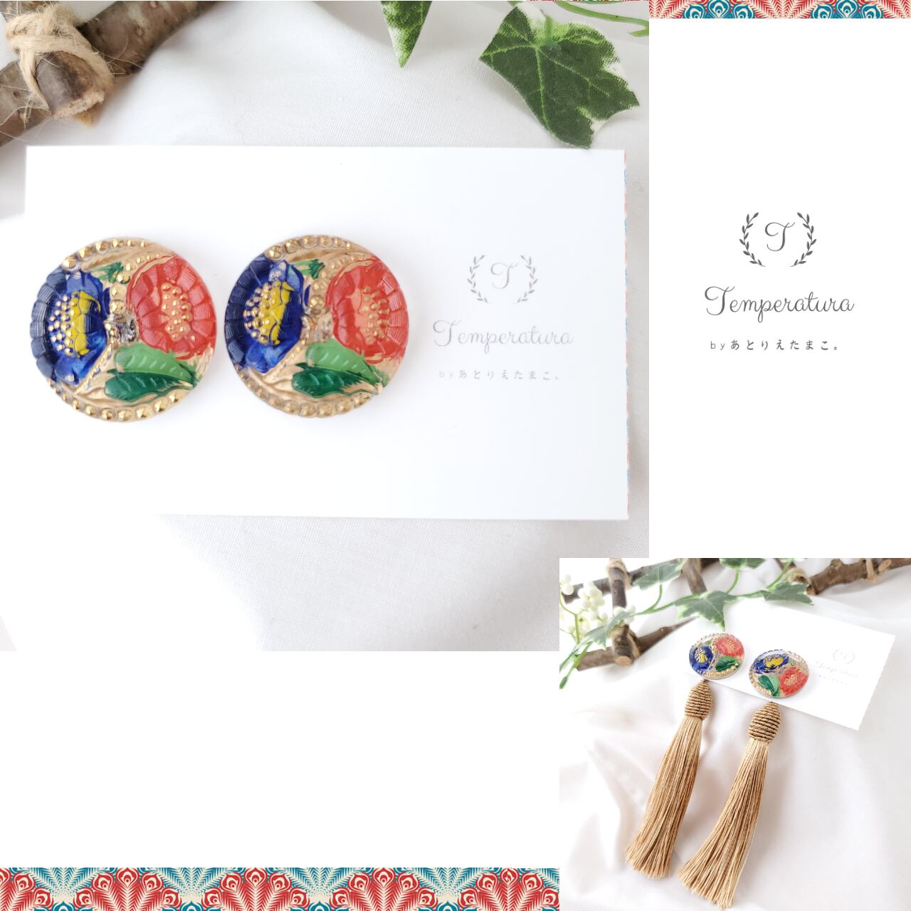 □チェコガラスボタン(裏面レジン処理)、フリンジ