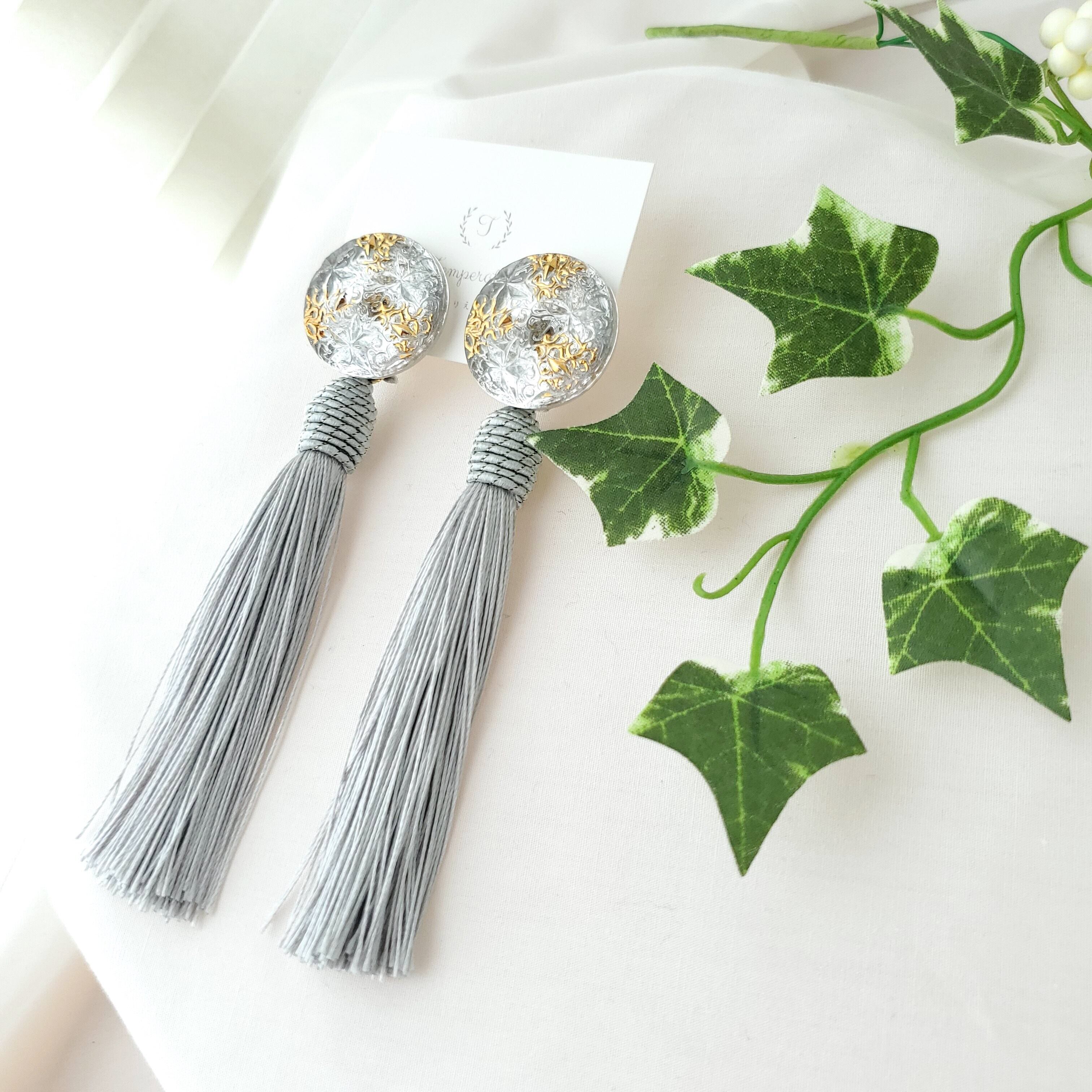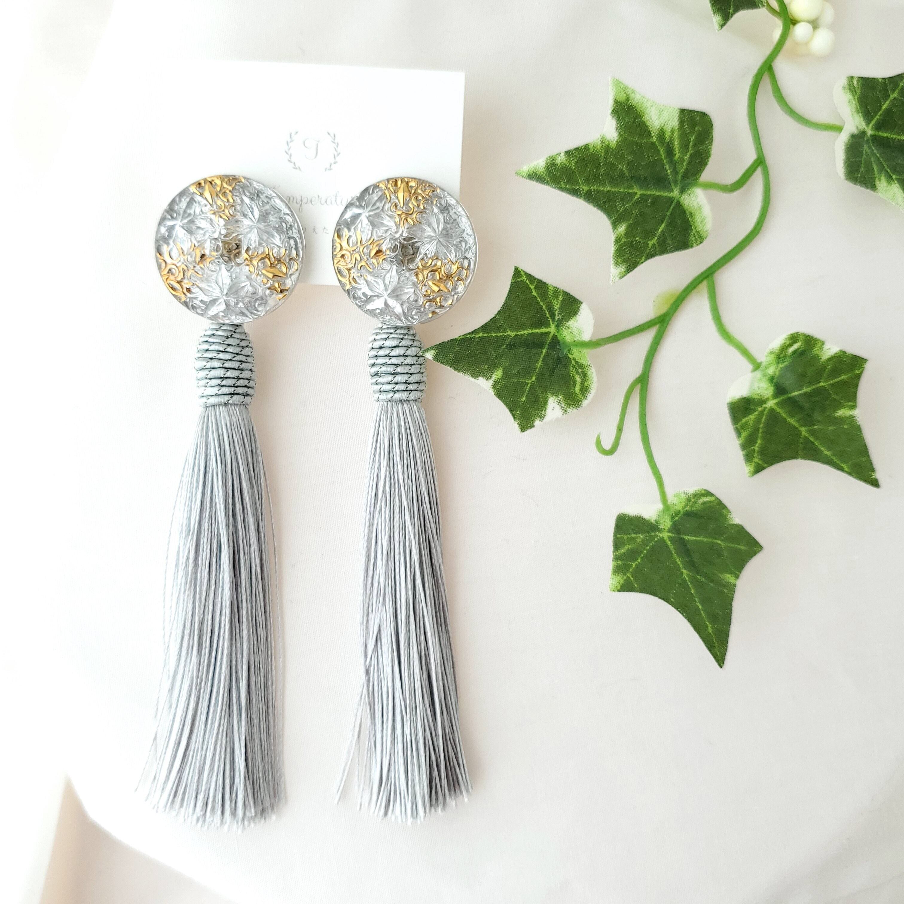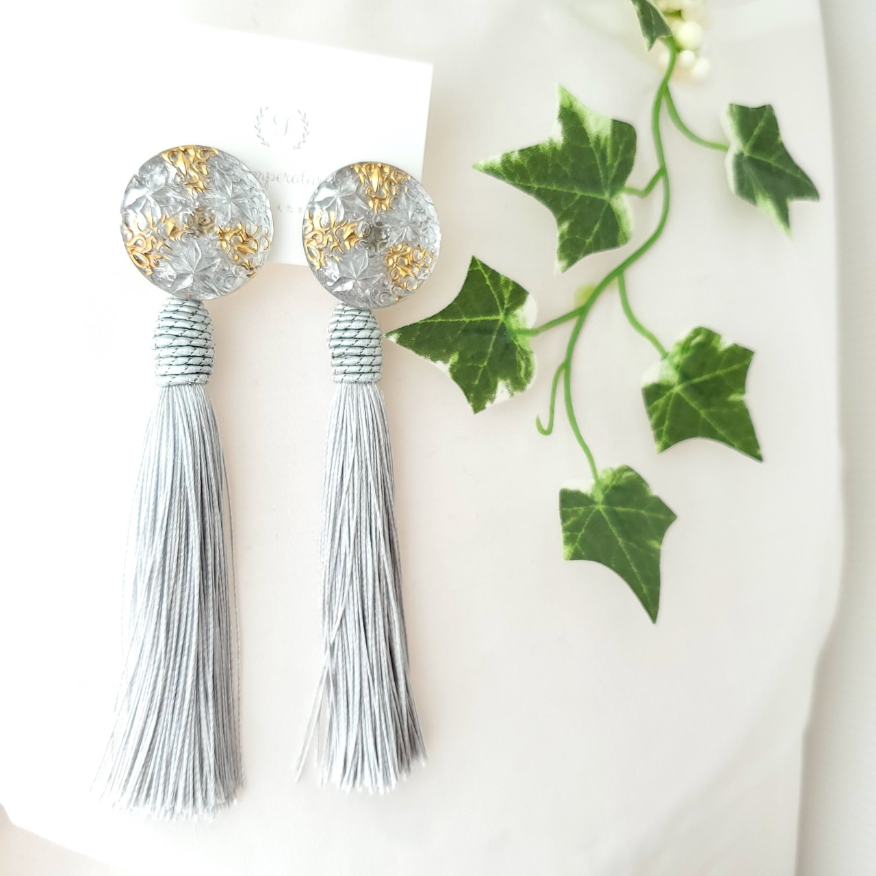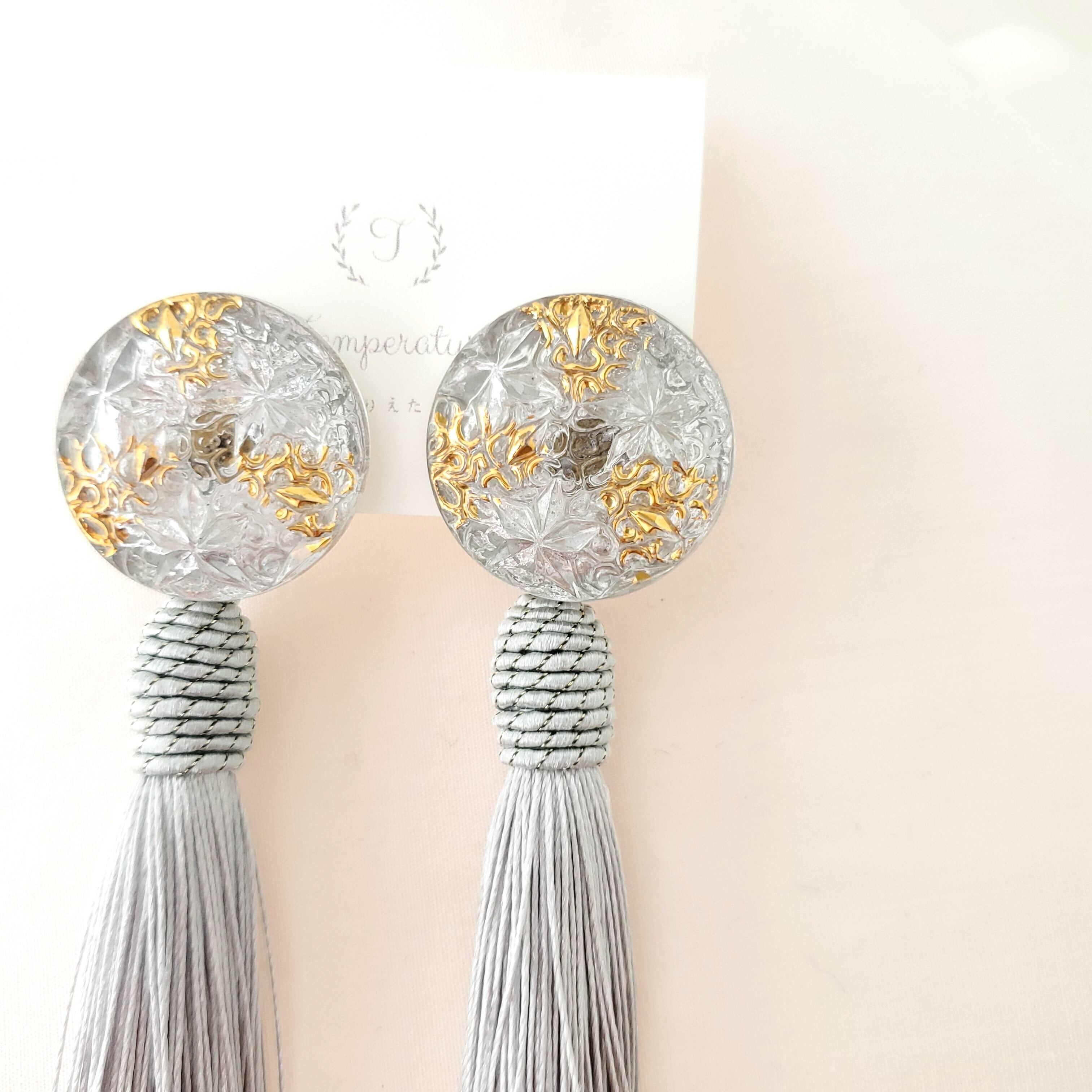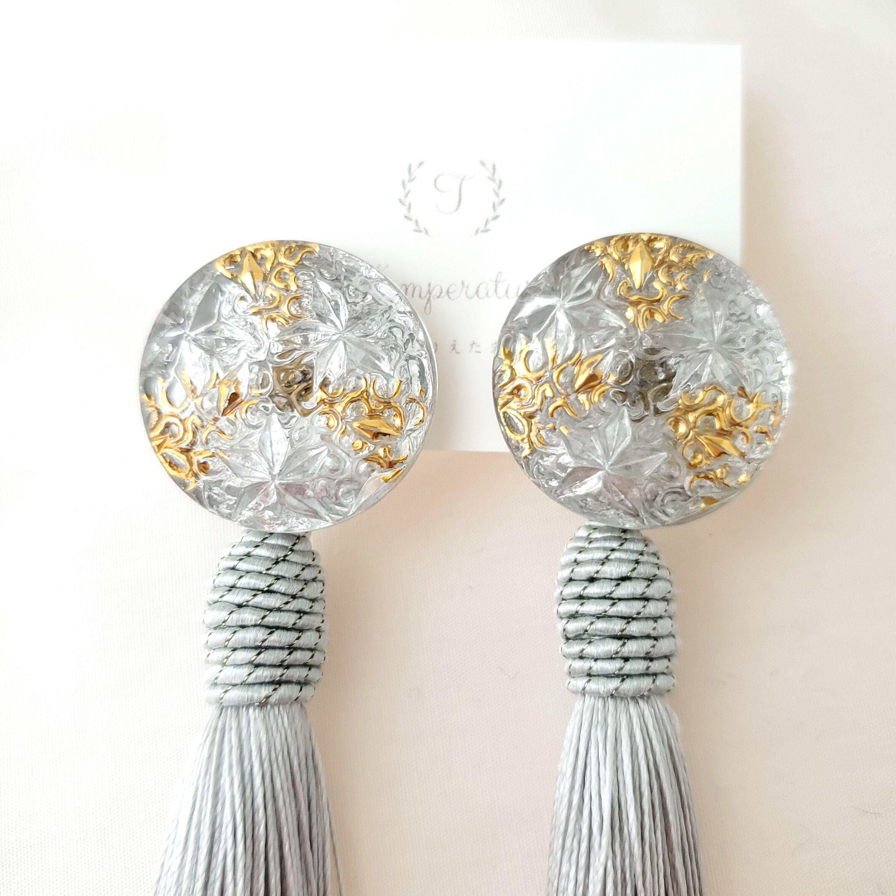 □チェコガラスボタン(裏面レジン処理)、フリンジ