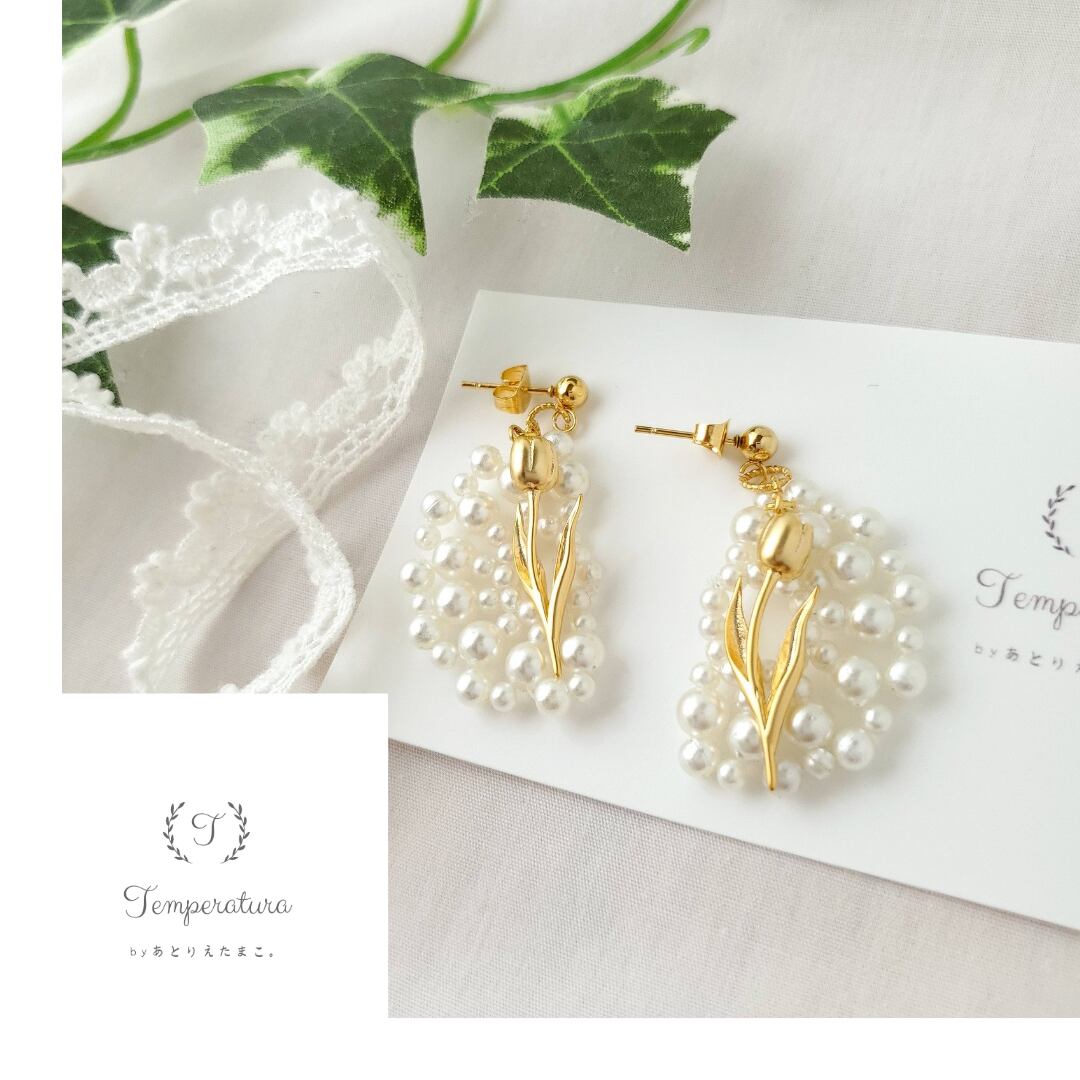 □金属製チューリップチャーム、プラスチック製パールチャーム