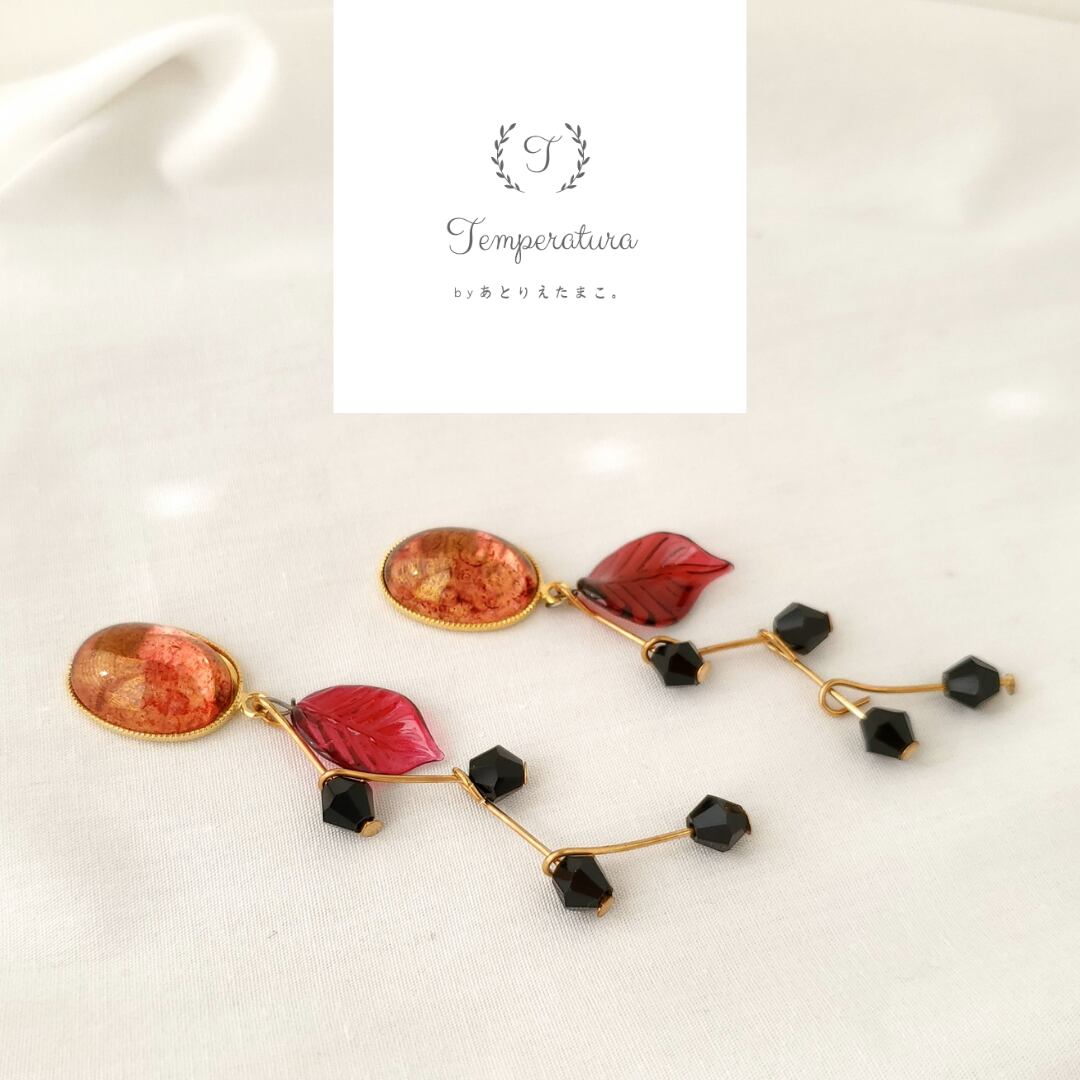 □チェコガラスカボション、金属台座、チェコガラスパーツ(葉)、金属パーツ、ビーズ